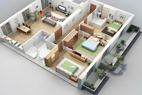 Tối ưu công năng sử dụng: Với 3 phòng ngủ, gia đình có thể bố trí phòng cho bố mẹ, con cái hoặc phòng khách kết hợp phòng làm việc. Không gian sinh hoạt chung và phòng ngủ riêng được phân tách hợp lý, đảm bảo sự riêng tư.