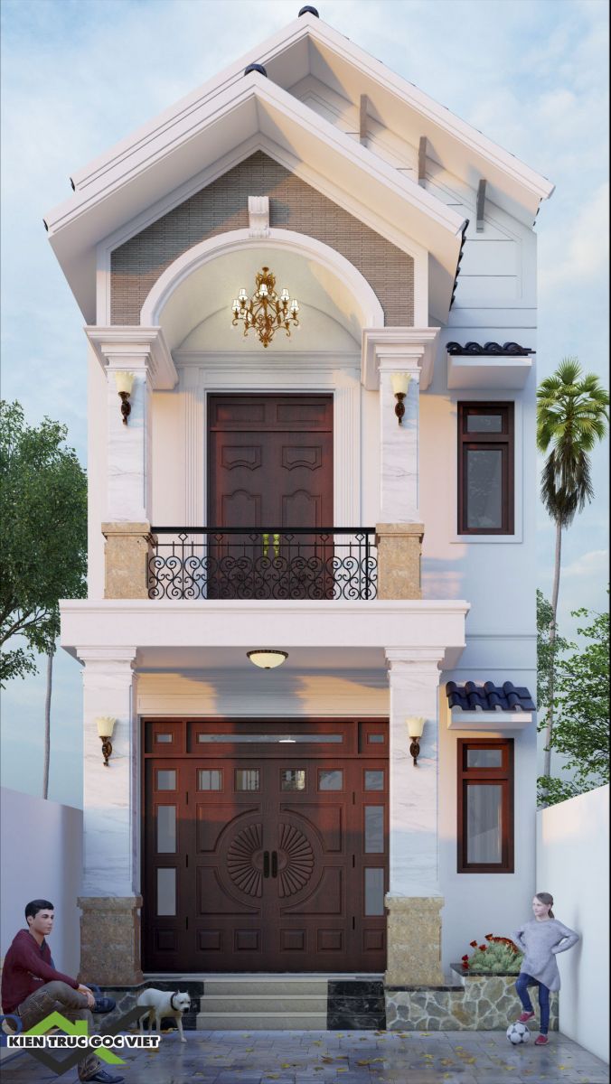 Diện tích xây dựng 5x22 được thiết kế với kiến trúc tân cổ điển mái thái