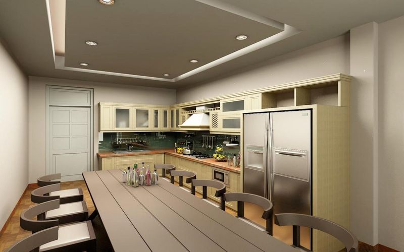 Nội thất trong một nhà bếp thông minh đa năng được bố trí cân đối, hài hòa để tạo nên một tổng thể phù hợp.
