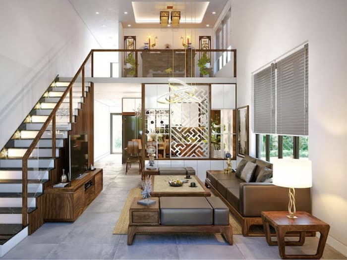 Chiều cao gác lửng và tầng trệt: Đảm bảo chiều cao gác lửng hợp lý (thường từ 2.2m - 2.5m) để không gian không bị bí bách. Chiều cao tầng trệt cũng cần đủ lớn (tối thiểu 3.6m - 4.5m) để tạo sự thông thoáng và cân đối cho toàn bộ ngôi nhà.